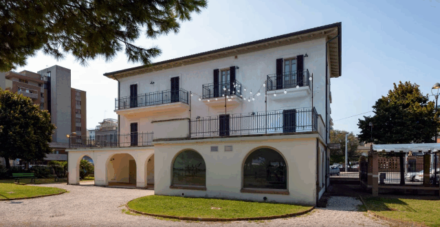 In via Gorizia 2, questa villa dei primi anni del Novecento presenta decorazioni vegetali, una veranda con balaustra e un giardino ornato da pini. L’impianto sobrio e armonioso unisce elementi neoclassici, neogotici e liberty, conservando nel tempo la raffinatezza originaria. Oggi è sede della Galleria d’Arte Moderna e Contemporanea di Riccione, che ospita collezioni e mostre dedicate agli artisti italiani del Novecento.